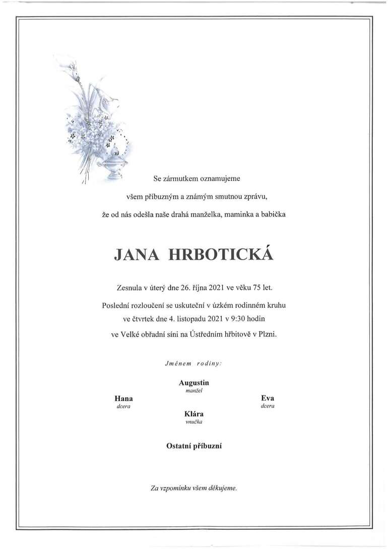 Paní Jana Hrbotická, která stála u zrodu Církevního gymnázia Plzeň a byla jeho první ředitelkou, zemřela ve věku 75 let. Poslední rozloučení se uskuteční v úzkém rodinném kruhu ve čtvrtek 4. listopadu.