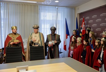 Nechyběla tříkrálová atmosféra, zpěv koled ani symbolické požehnání. Letos se role „černého“ krále ujal plzeňský biskup Tomáš Holub, který se společně s dalšími zástupci kraje a města zapojil do koledování a podpory Tříkrálové sbírky.