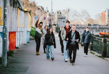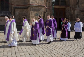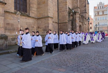 Po společné mši svaté v katedrále a parádním obědě na biskupství (řízek s kaší nesměl chybět!) jsme se všichni účastníci rozdělili do osmi skupin. Pěšky jsme vyrazili zpět na gymnázium a cestou debatovali nad netradičními otázkami. Například: „Kdyby byla tvá víra mobilní aplikace, jaké by měla funkce a ikonku?“ Své závěry jsme pak v cíli sdělili přímo biskupovi Tomášovi.