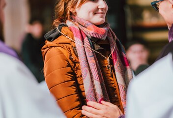O lidech bez domova, kteří pečují o plzeňskou katedrálu, přišla říci Helena Johnová (vedoucí pastoračního oddělení). Druhé svědectví nám předal oblát Ota Medvedec, který se s námi podělil o svou cestu víry a jak se dostal ke kněžství.