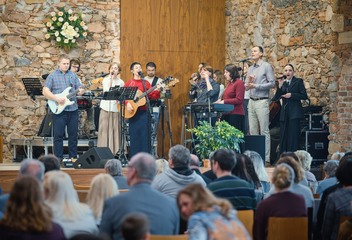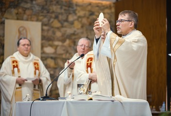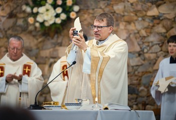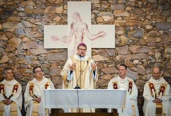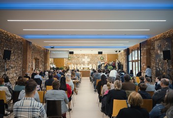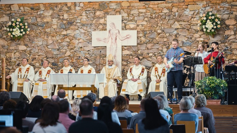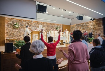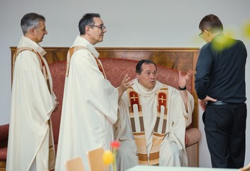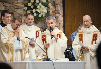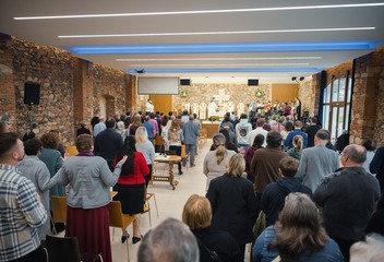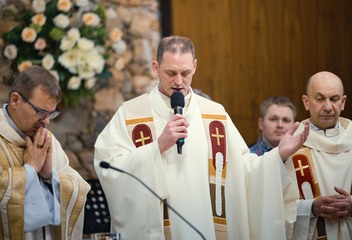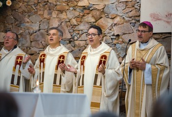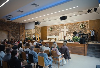 Ve farním sále v Liticích se v neděli sešli kněží i farníci z farností Koinonia Jana Křtitele, aby společně slavili mši svatou s biskupem Tomášem, který zde v předchozích dnech uskutečnil kanonickou vizitaci.