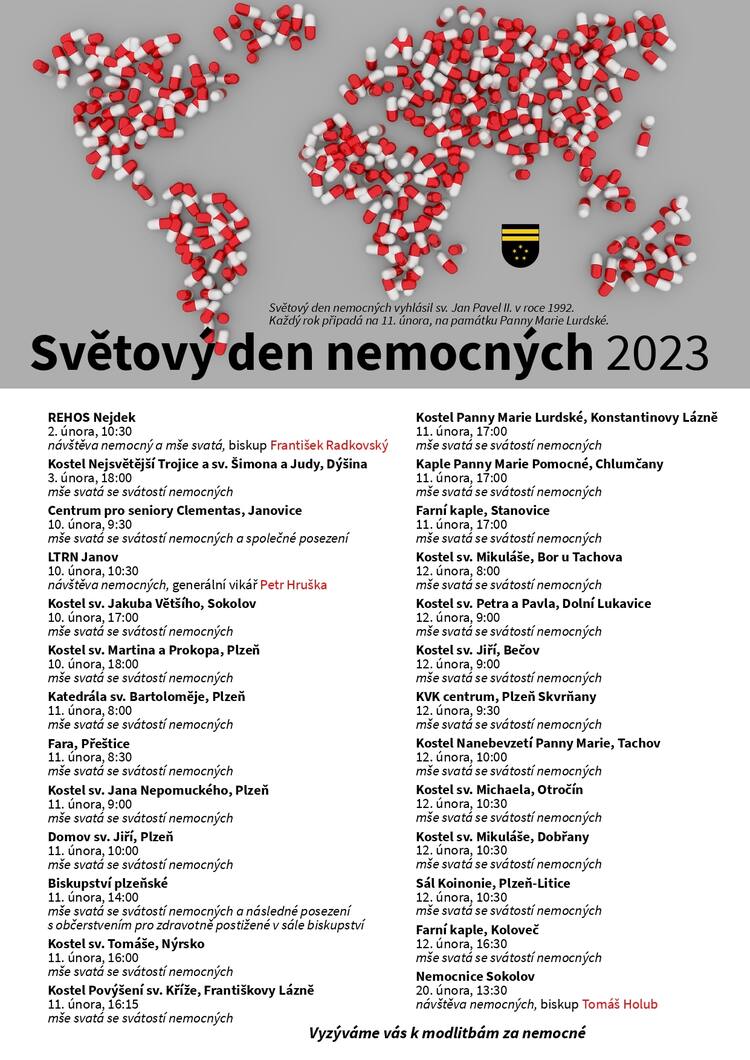 Světový den nemocných vyhlásil roku 1993 papež Jan Pavel II. Biskup Tomáš, biskup František i generální vikář Petr Hruška se v rámci Světového dne nemocných opět chystají navštívit nemocné v různých nemocnicích plzeňské diecéze. Ve farnostech nabízí kněží během bohoslužby možnost svátosti pomazání nemocných (podrobný přehled níže).