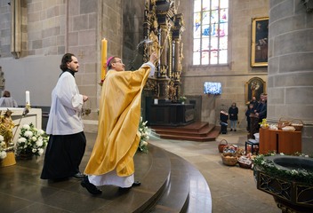 Velikonoční ráno pak přineslo naplnění této noci. V katedrále jsme slavili Zmrtvýchvstání Páně jako radostnou skutečnost, která zaznívá uprostřed společenství i liturgie. Prostor chrámu se naplnil světlem, zpěvem a pokojem, v němž bylo možné vnímat přítomnost zmrtvýchvstalého Krista.