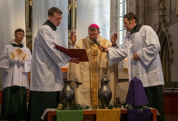 Velikonoční tajemství se pomalu otevřelo už na Zelený čtvrtek ráno při Missa Chrismatis – mši se svěcením olejů. Tato slavnost, při níž se shromáždili kněží celé diecéze kolem biskupa Tomáše, nám připomněla jednotu církve i obnovu kněžských slibů. Posvěcené oleje, které budou po celý rok používány při svátostech, se tak stávají tichým znamením Boží blízkosti v lidském životě.